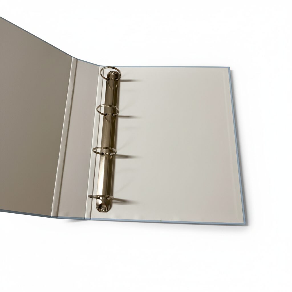 BRED, 60mm ytterpärm av kraftig kartong med omslag i glansig laminerad ytterpapper. Insidan är vit.